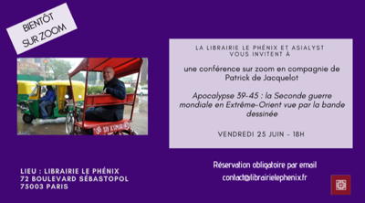 J'ai donné le vendredi 25 juin à 18h00 une visioconférence pour la Librairie du Phénix sur la Seconde Guerre mondiale en Extrême-Orient à travers la bande dessinée. En voici le texte de présentation paru sur Asialyst.